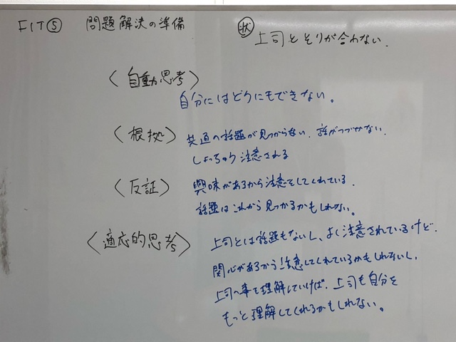 適応的思考をする、というプロセスからスタートします。今回は参加者の皆さんの意見を聴きながら、
