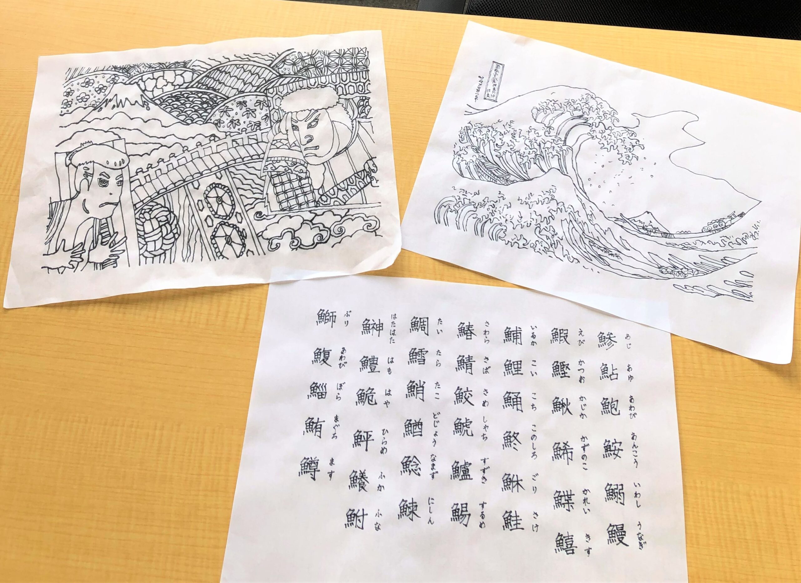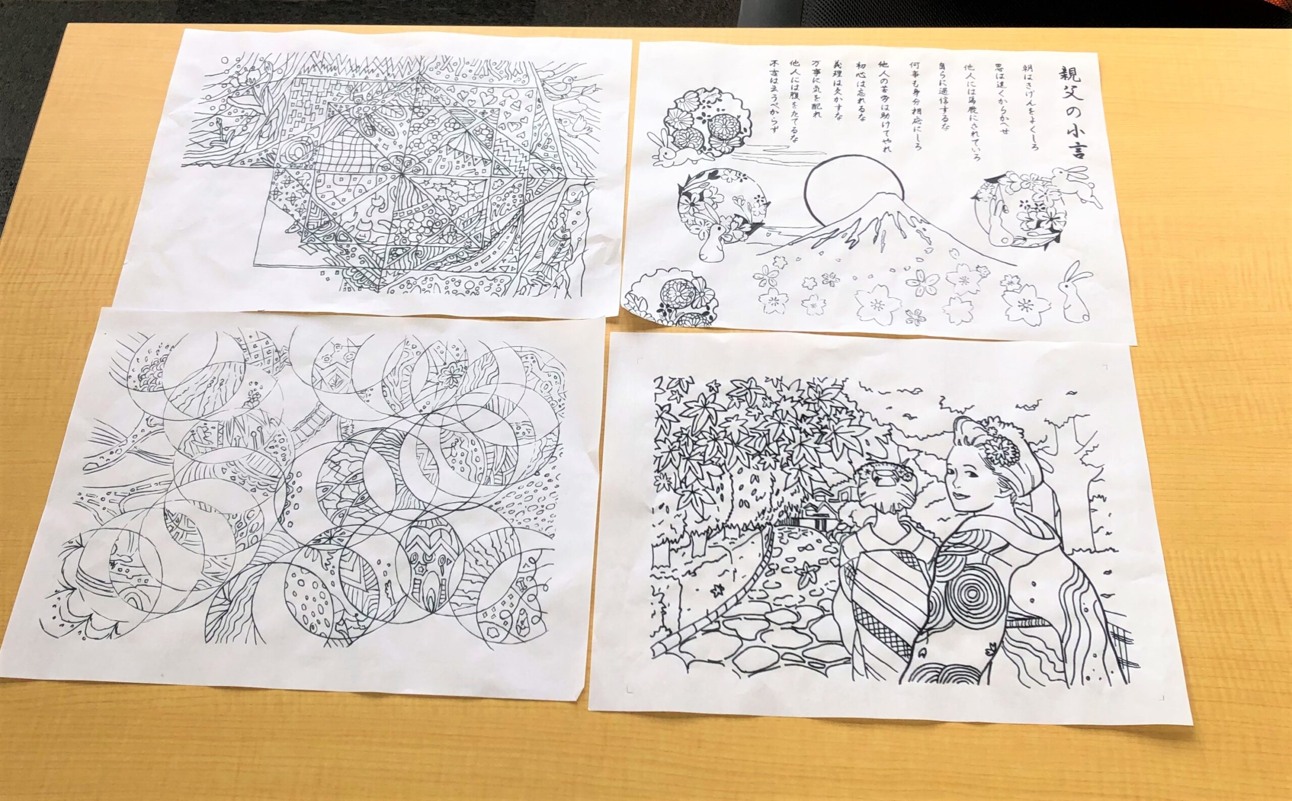 先日「余暇活動」のプログラムの中で、筆ペンを使ったお手軽アートに取り組みました🌼好きな線画や文字を印刷して半紙をのせて、筆ペンでなぞる、というものです!