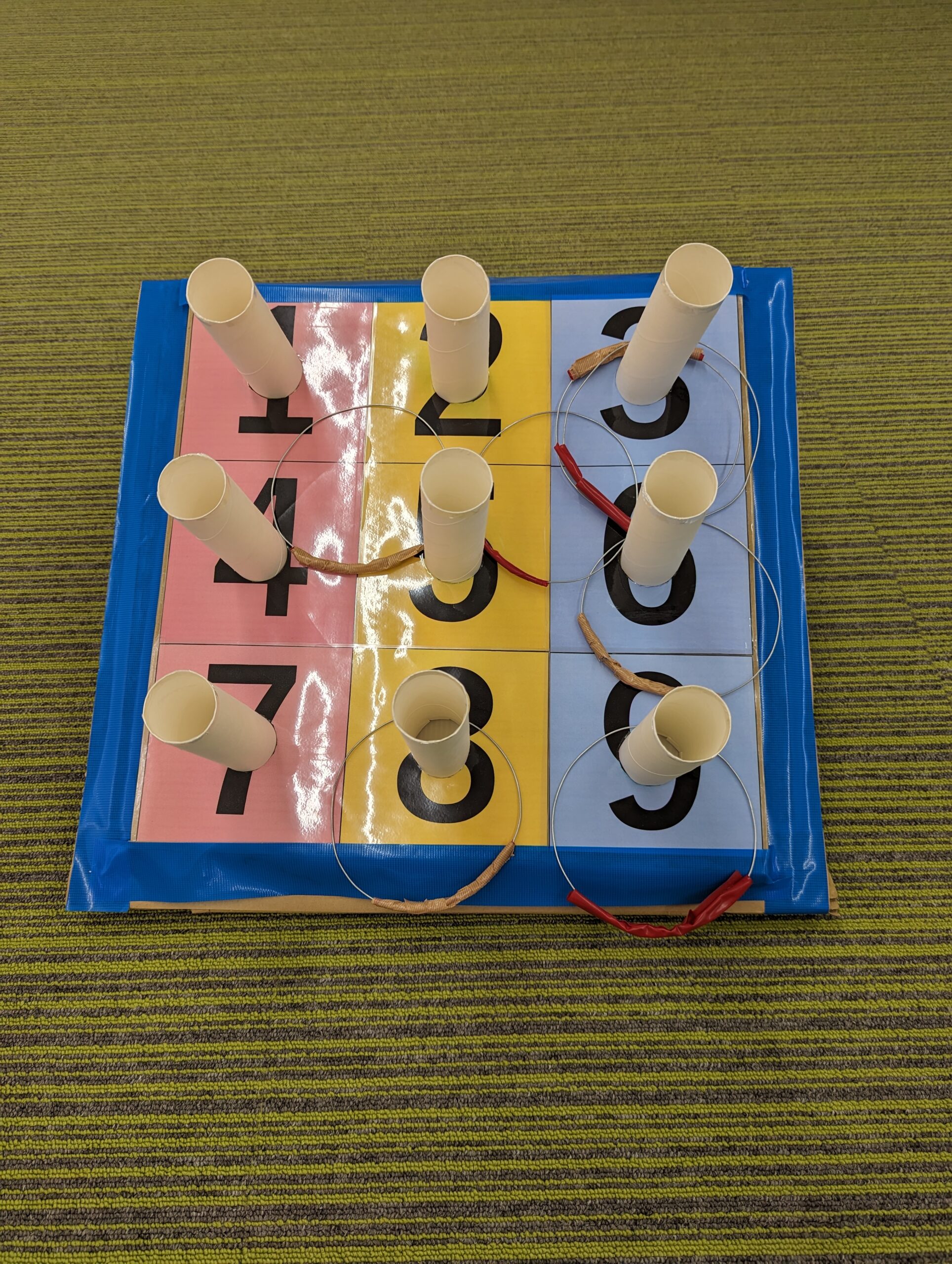 利用者さんと一緒に作った輪投げセットです。