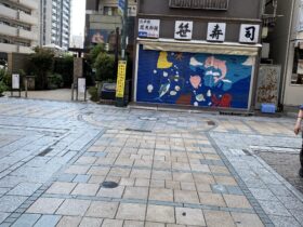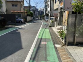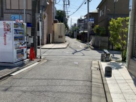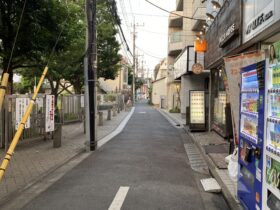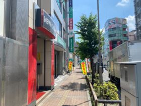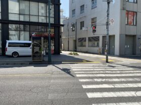 通りを出たところです。ロッテリアの正面にある階段を下ります。