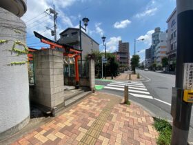 左手に鳥居が見えたら、交差点を左折します。 -