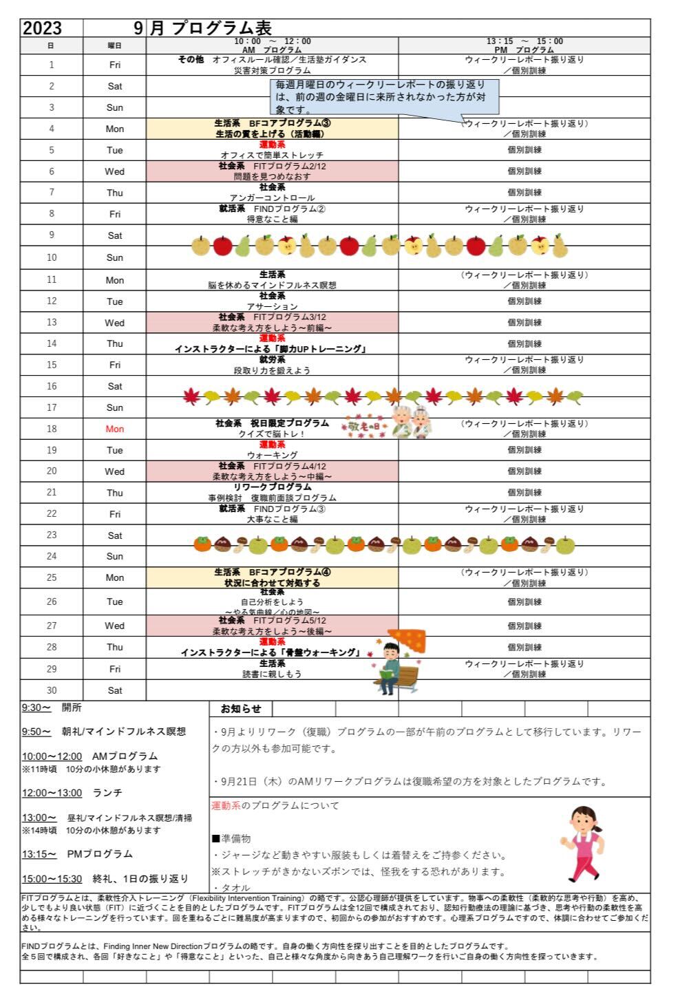 今月のプログラム内容は下記をご参照ください ⬇️