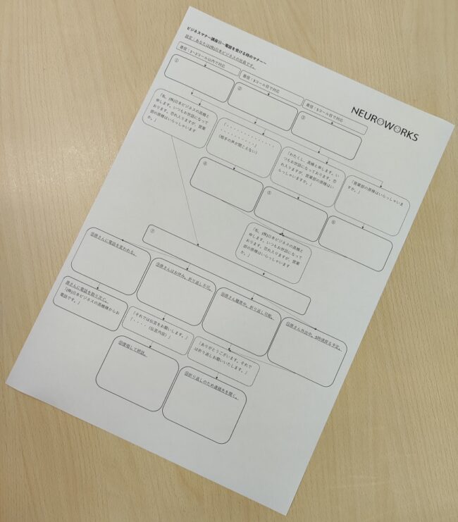 このチャートに沿って一つずつ応対する言葉を記入していきます。