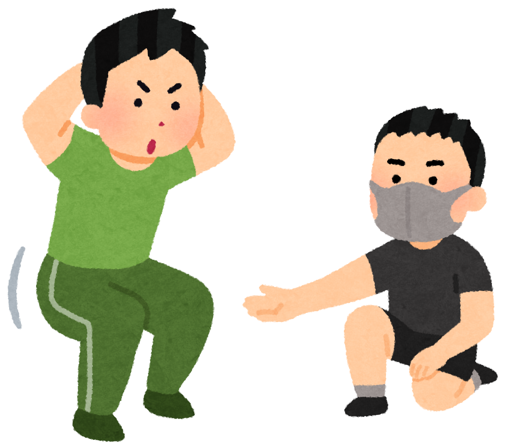 ラジオ体操でウォーミングアップしてから自重トレーニングに取り組みます。