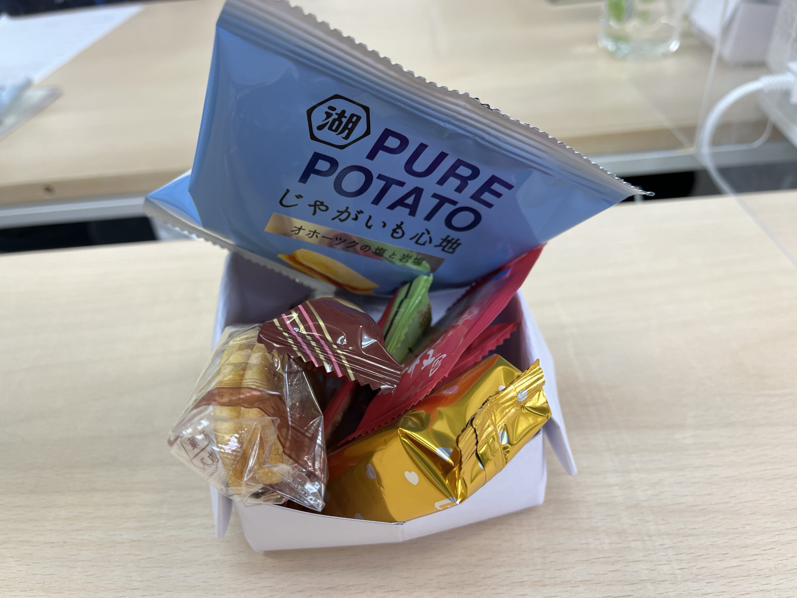 利用者さんたちが選んだお菓子をみんなでつまみながら、
