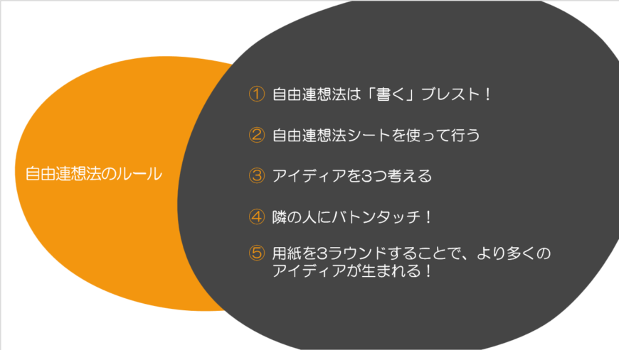 アイディア出しに使う技法で、今回はテーマに沿って紙に意見を書き出してまとめる手法でやってみました。
