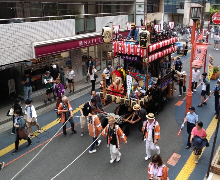 これはセンターの入っているビルから撮れた山車通過の様子です!