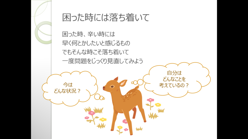 実際のプログラムではどのようなプロセスを経て周りに相談すればいいのか、ワークや実践練習を交えてお伝えしております。