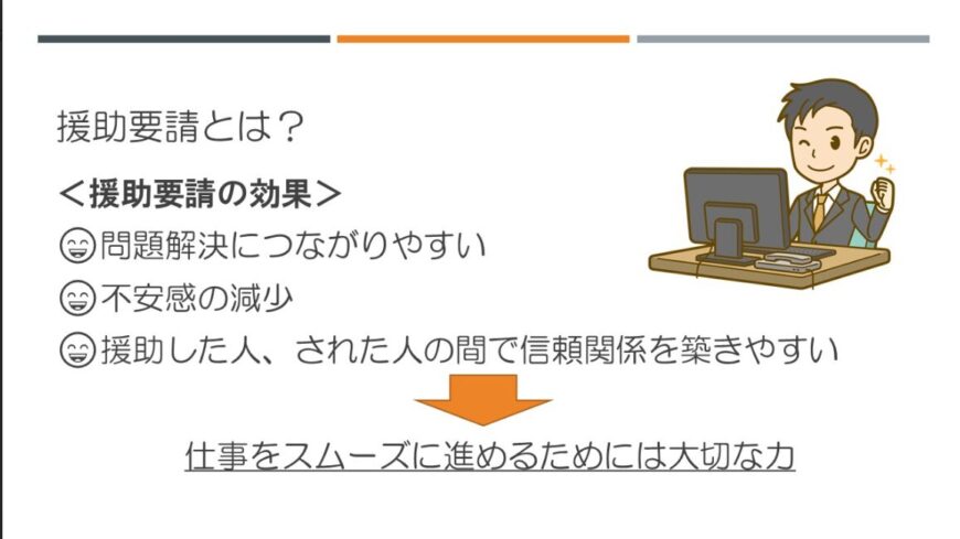 そのためには、「何に困っているのか」「どのように助けてほしいのか」など、SOSの状況を整理し、発信すること(援助要請)が大切です。😊