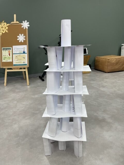 ぺーパータワーとは、チームに分かれて決められた枚数の用紙を用いて、制限時間内にできるだけ高い高さのタワーを作って、どのチームが安定した高いタワーを作ることができるかを競う、そういったプログラムです✨