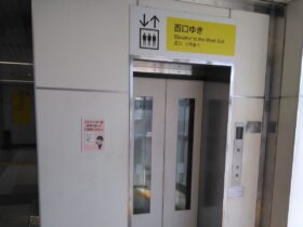 エレベーターを降りたら、横断歩道をわたって右へ進みます。 -