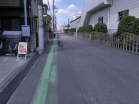 左手の駐車場の奥のビルの2階にニューロリワーク所沢センターがあります。(駐車場から看板も見えます) -