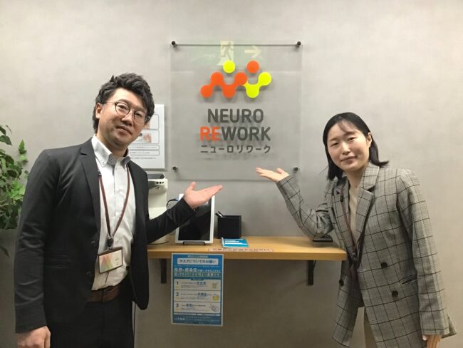 「航空公園西口第一武井ビル」の2階へ上ります。ニューロリワークの看板があるドアをお入りください。スタッフ一同お待ちしております。