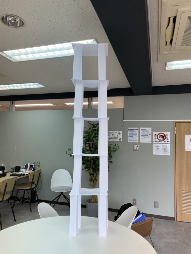 道具(ハサミや糊など)は一切使わず、A4の紙30枚をどれだけ高くタワーにできるかというシンプルなものですが