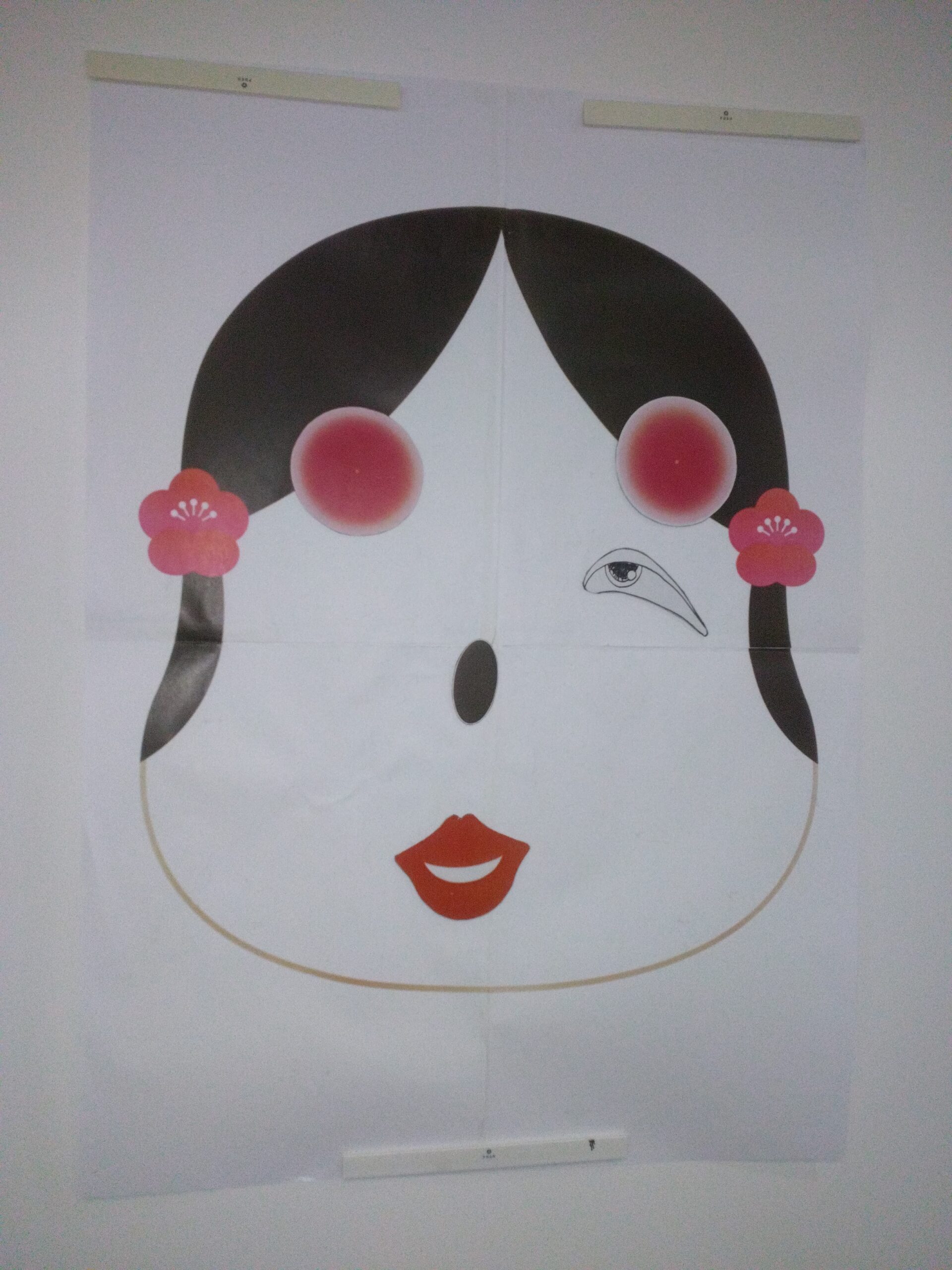 目隠しをしてパーツを手探りで選んで顔に張り付けていきます。