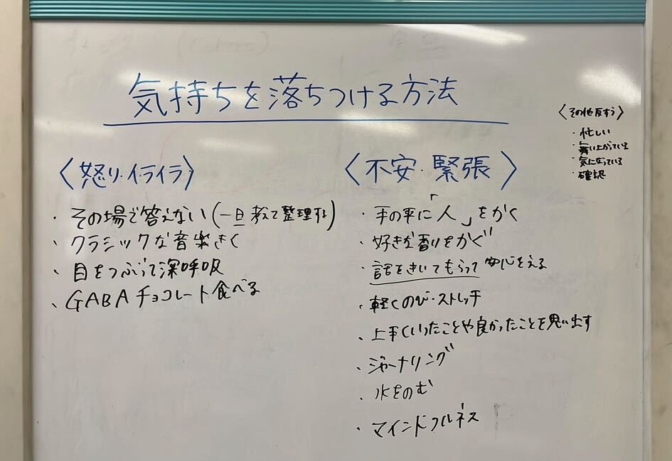 それに対してのセルフケアやコーピングをシェアしていただきました。