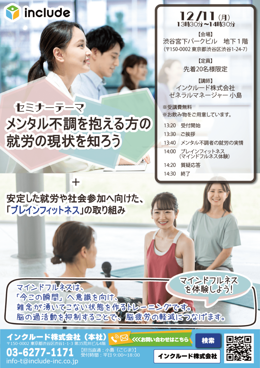 セミナー「メンタル不調を抱える方の就労の現実を知ろう」を開催いたします。