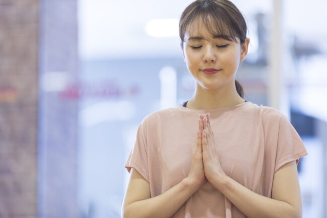 最初に、楽な姿勢をとります。椅子に座ったり床にあぐらをかいたり、仰向けに寝そべったりと楽な体勢で問題ありません。