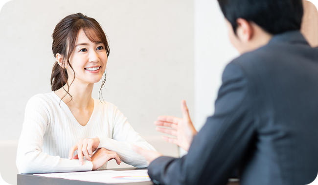あなたが希望する就職に向かって、就職活動をサポートします。たとえば、履歴書や職務経歴書などの応募書類の作成や添削、アドバイスや模擬面接の練習や状況に応じて面接の同行、推薦状の作成などを行っていきます。